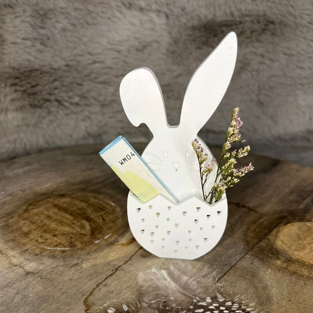 Geldgeschenk Osterhase mit Blumenhalter – dekorativer Gutschein- & Geldhalter für Ostern