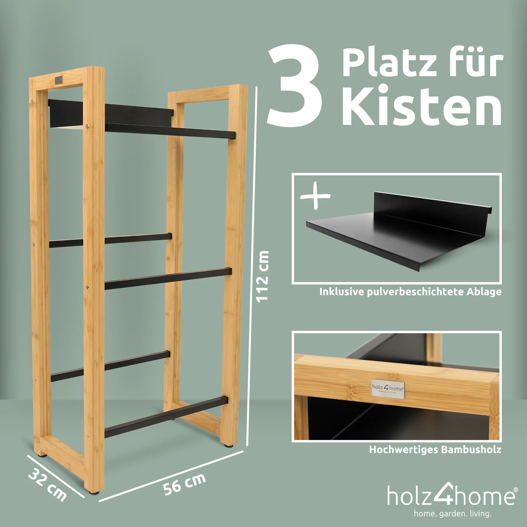 Getränkekistenregal aus Bambusholz inkl. pulverbeschichteter Ablage
