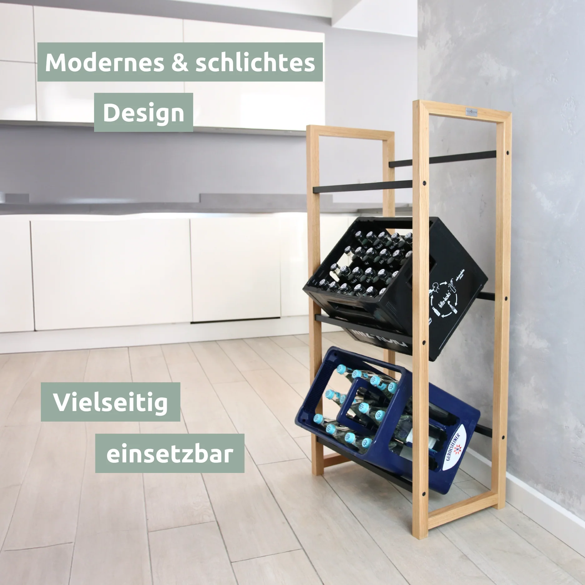 Keywords: Getränkekistenregal, modernes Design, platzsparend, robuste Materialien, vielseitig einsetzbar, Keller, Küche, Garage, Ordnung, langlebig, stilvolle Lagerung.