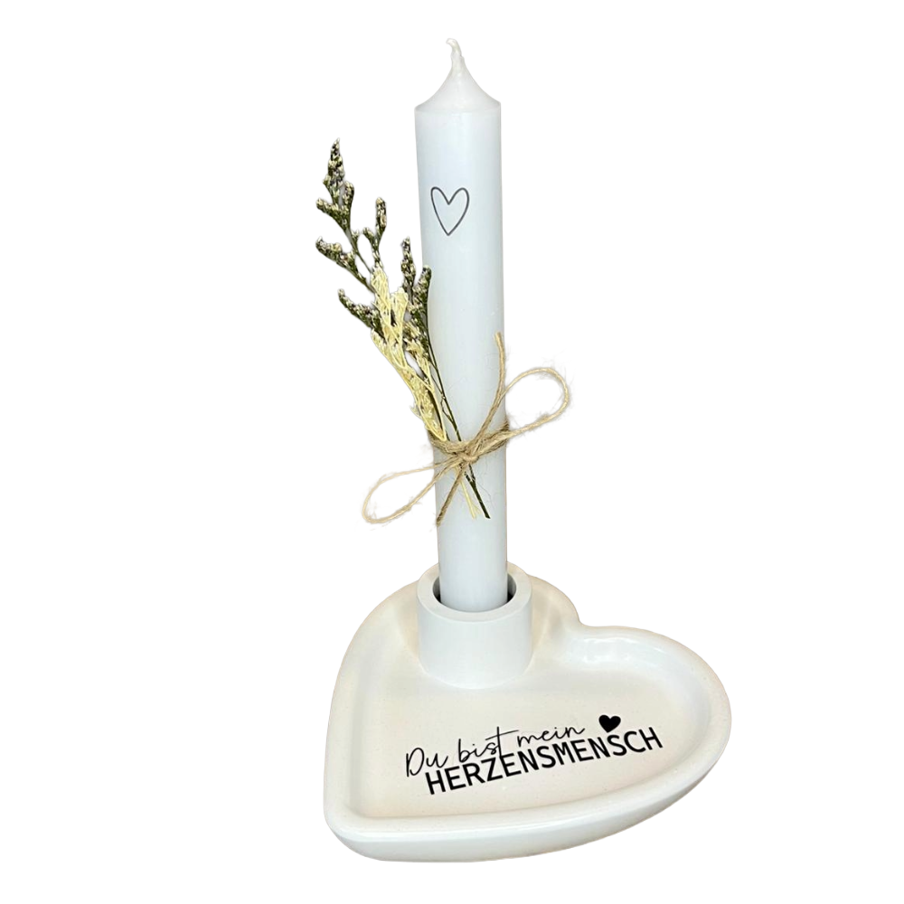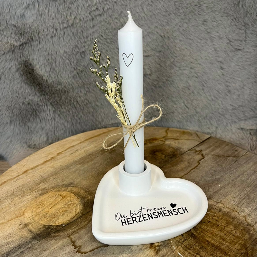 Kerzenhalter Herz – mit Kerze & Trockenblumen