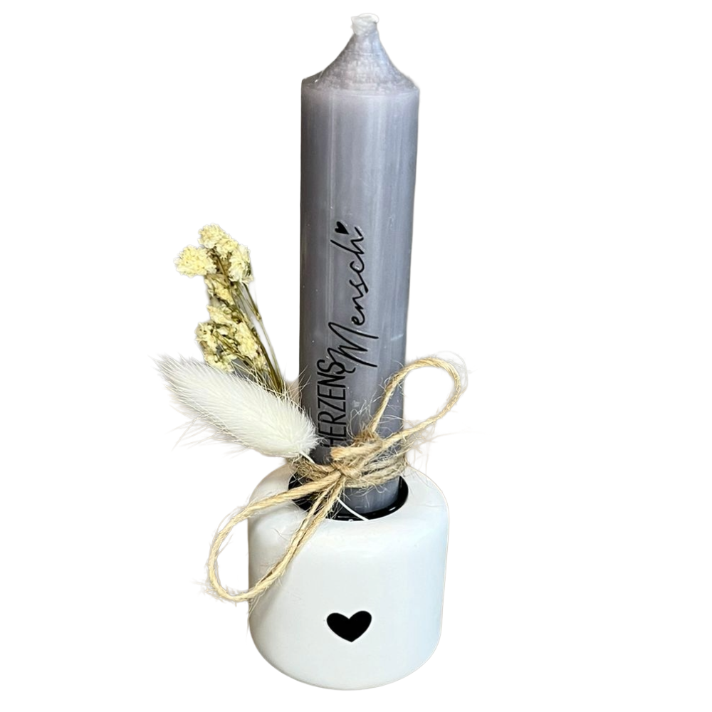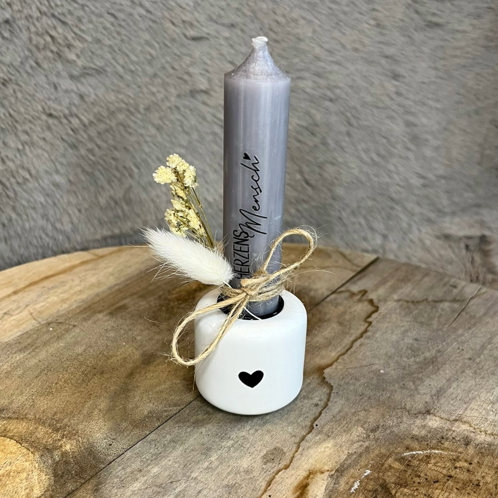 Kerzenhalter mit Kerze – handgegossene Dekoration