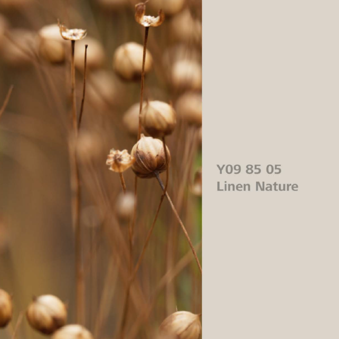 Linen Nature ist ein heller, natürlicher Beigeton mit sanfter Wärme und ruhiger Ausstrahlung. Inspiriert vom Flachs (Linum usitatissimum) und der Anmut getrockneter Stängel und Blätter, verkörpert dieser Farbton schlichte Natürlichkeit in ihrer harmonischsten Form.