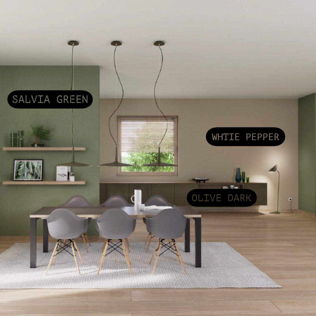 Die Wirkung ist fokussierend und ruhig zugleich. Olive Dark schafft eine Atmosphäre von Stabilität und natürlicher Eleganz. Der Ton wirkt edel und selbstbewusst, ohne aufdringlich zu sein, und verleiht Oberflächen eine besondere Tiefe.