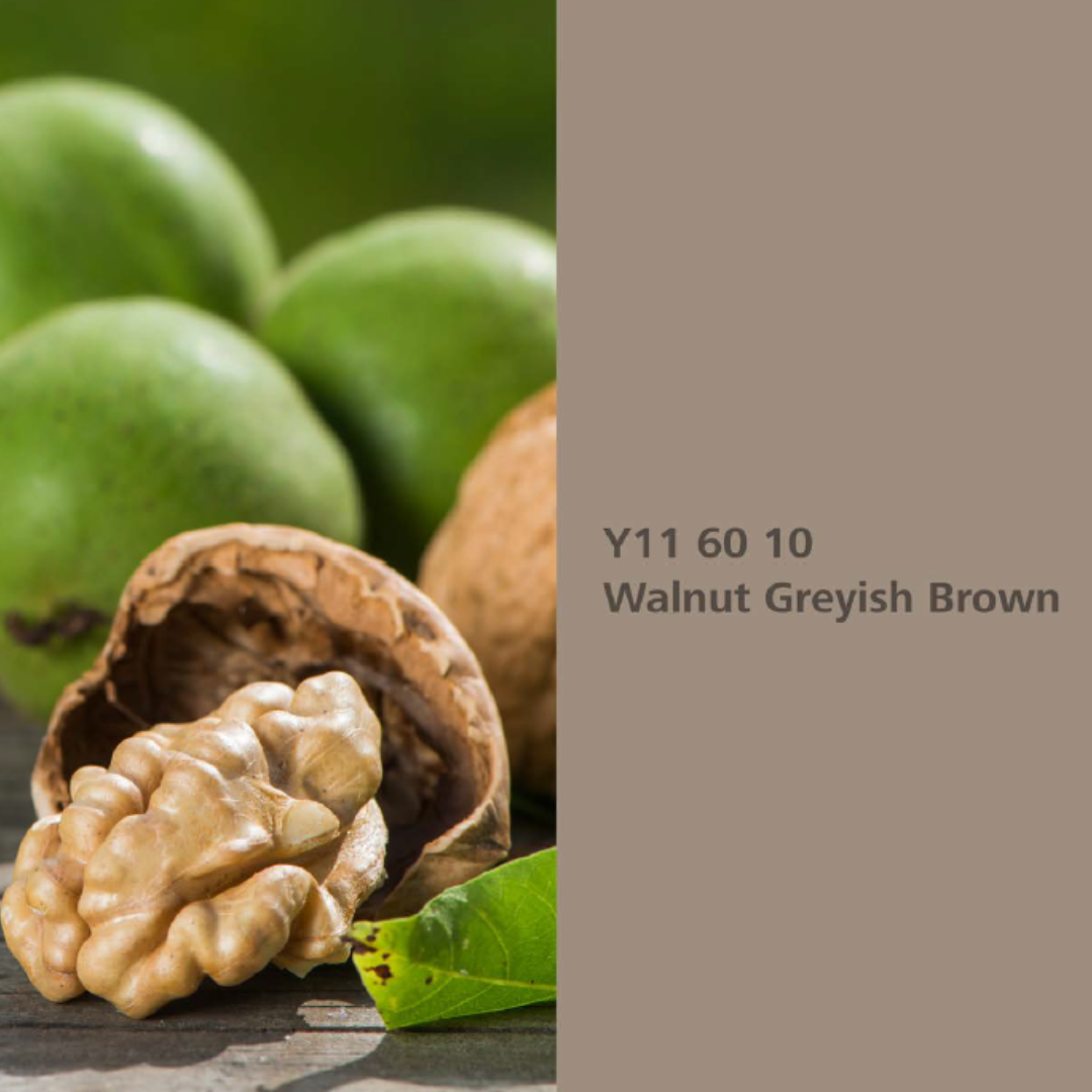 Walnut Greyish Brown ist ein harmonischer, warmer Braunton, inspiriert von der Walnuss (Juglans regia). Der Farbton erinnert an die natürlichen Schalen und Blätter der unreifen Früchte und strahlt eine ruhige, verlässliche Natürlichkeit aus. Mit seiner behaglichen Wärme schafft Walnut Greyish Brown eine Atmosphäre, die sowohl entspannend als auch einladend wirkt.