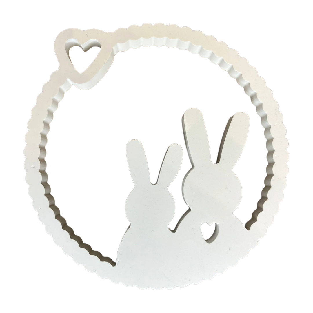Dieser liebevoll gestaltete Osteranhänger mit Hasenpaar ist eine schöne Dekoration für die Frühlings- und Osterzeit. Das filigrane Motiv zeigt zwei Hasen in einem dekorativen Kreis, ergänzt durch ein kleines Herzdetail – eine besonders charmante Darstellung für eine gemütliche Osteratmosphäre.