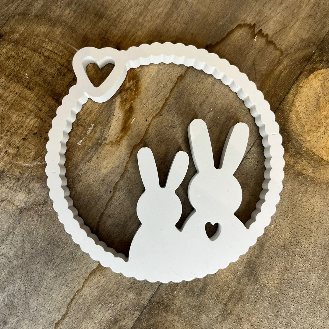 Osteranhänger mit Hasenpaar im Kreis – dekorative Osterdeko zum Aufhängen Ø 12 cm